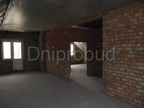 Гараж в будинку, великий балкон з спальні на 2-му поверсі. Мінімальна висота стіни на 2-му поверсі - 1,3 м. Вид на р. Дніпро.
