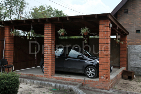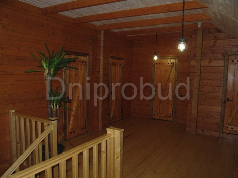 Перекриття — по дерев'яних балках, задня тераса переходить в басейн. Навіс на 2 авто.