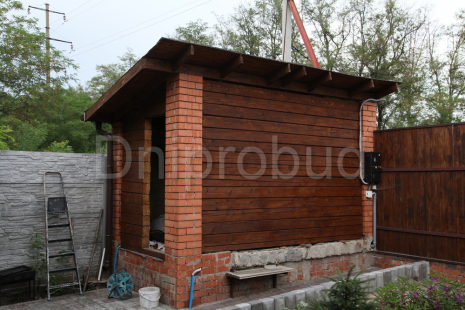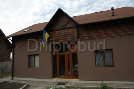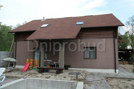 Будівництво комбінованого будинку в Дніпрі (с. Любимівка) площею 180 м. кв. 1-й поверх з цегли та ракушняка + пінополістирол 80 мм + декоративна штукатурка, 2-й профільований брус (між брусом прокладено льоноволокно)