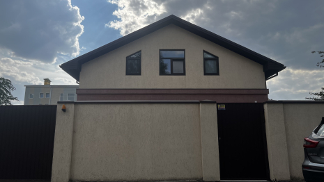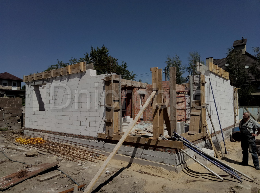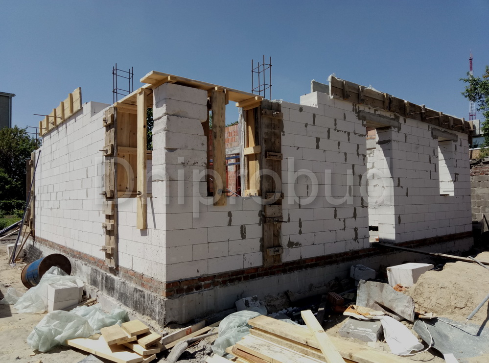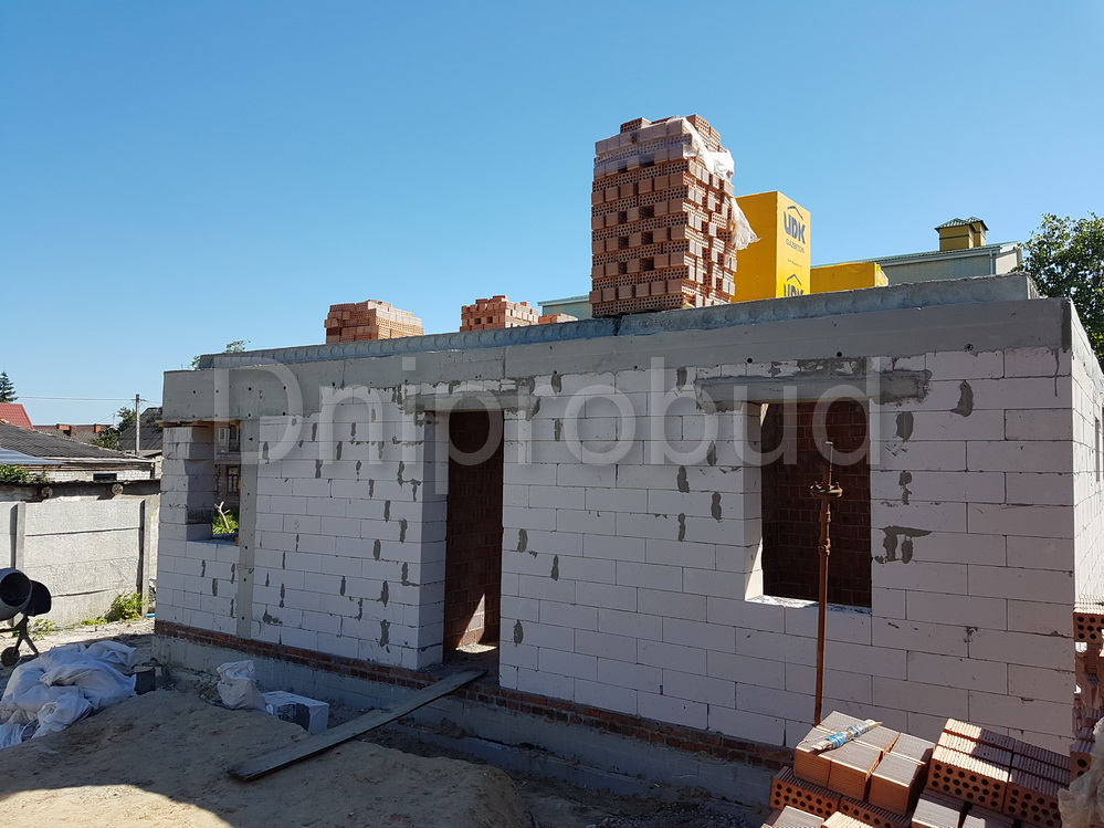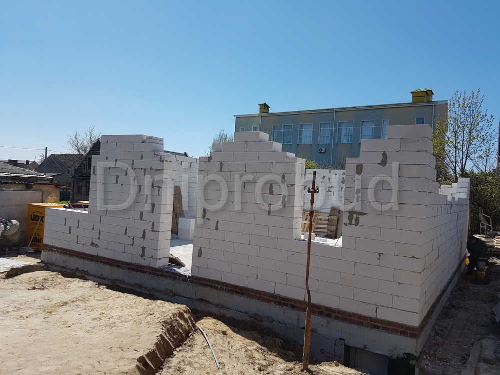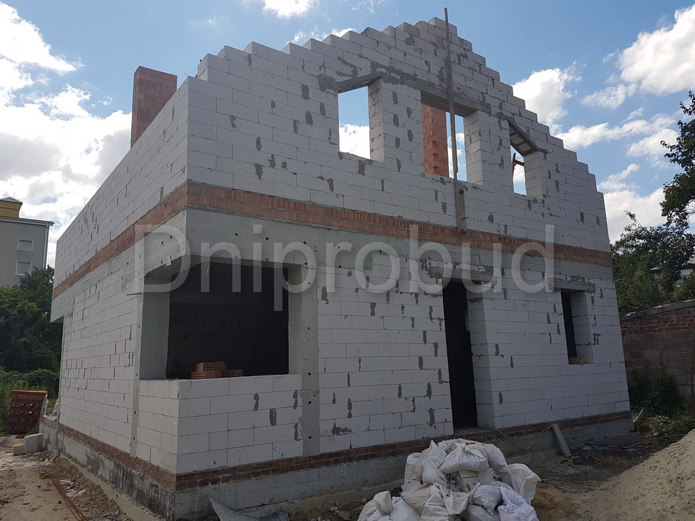 Котедж мансардного типу з газобетону в центральній частині м. Дніпро. Будівництво відбувалося на ділянці з щільною міською забудовою, був проведений демонтаж 3-х старих будівель непридатних до експлуатації та реконструкції.