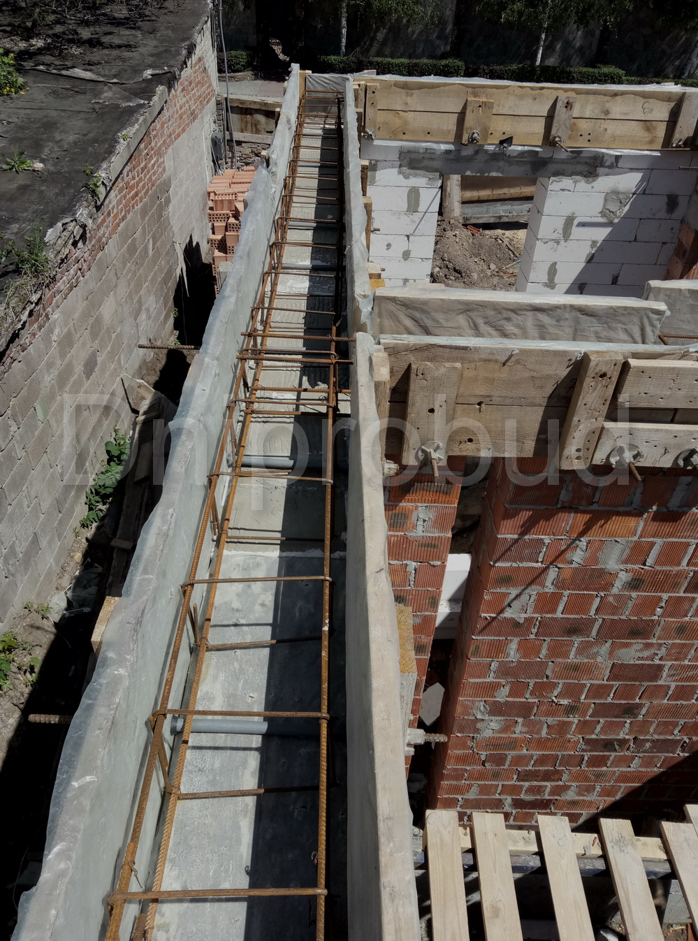 - Загальна площа 180 кв. м, висота стель 3 м на першому поверсі і 2-3 м на другому поверсі, стіни — газобетон D-500, простінки — керамічний блок.