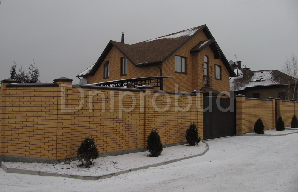 - Стіни: цегла 2 NF + плита пінополістирол 100 мм + цегла напівклінкерна.