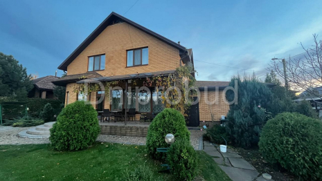 Будинок з напівкруглим еркером у с. Дослідне, Дніпровського району, Дніпропетровської області. Будівництво котеджу відбувалося за індивідуальним проєктом замовника.