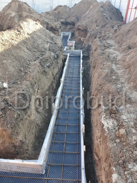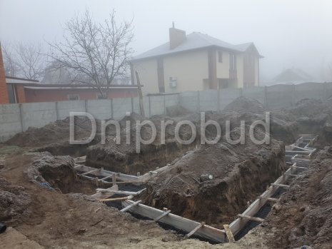 - Складна геологічна обстановка місцевості, а саме: відповідно до геології під родючим шаром чорнозему (ІГЕ-1) знаходиться шар піску (ІГЕ-2) потужністю близько 0,7 м за яким слідує ще один шар чорнозему (ІГЕ-3) зміною потужністю 0,5 - 0,8 м і тільки після цього слідує шар супіски (ІГЕ-4) який і є опорою майбутнього фундаменту. У зв'язку з цим було прийнято рішення виготовити фундамент на глибині 1,4 м від існуючого рівня грунту для його спирання на рівномірну, непросадочную основу.
