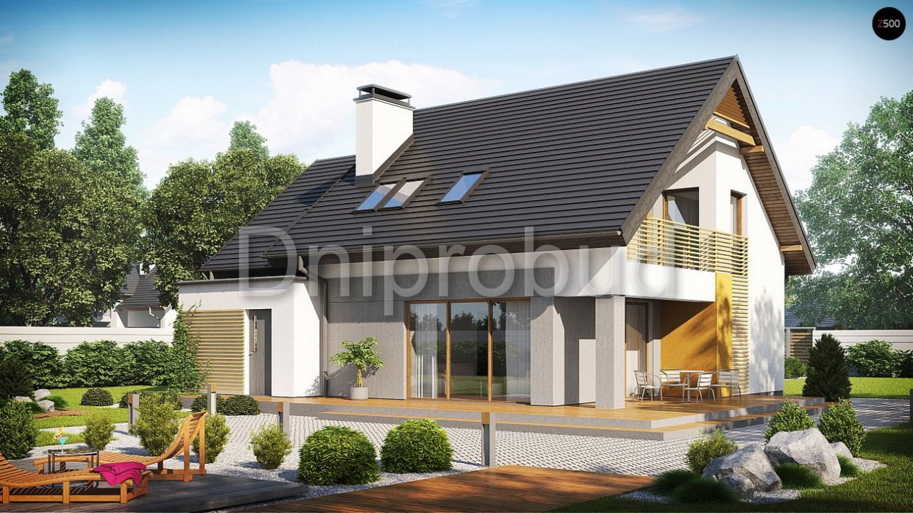 Будівництво мансардного будинку з гаражем на 1 машину на лівому березі м. Дніпро. У грудні 2019 року будівельною компанією Dniprobud був укладений договір підряду на будівництво індивідуального житлового будинку за проектом U219 від компанії Z500. Особливостями будівництва даного об'єкта є: