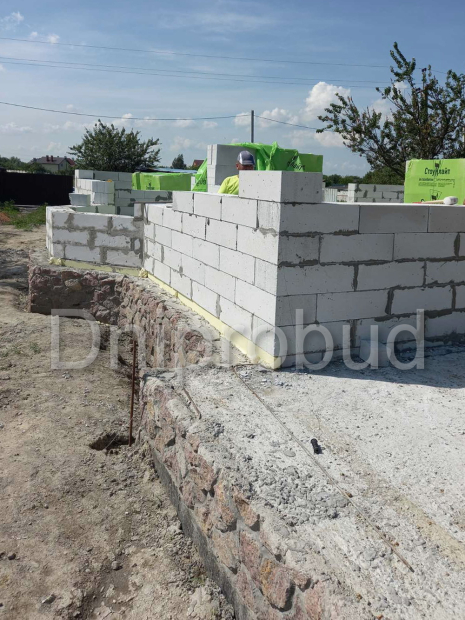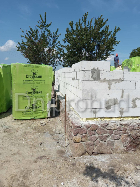 - Утеплення фасаду будинку з використанням газоблоків товщиною 150 мм.