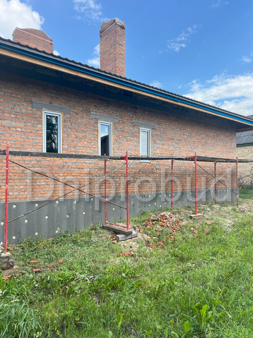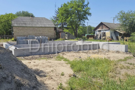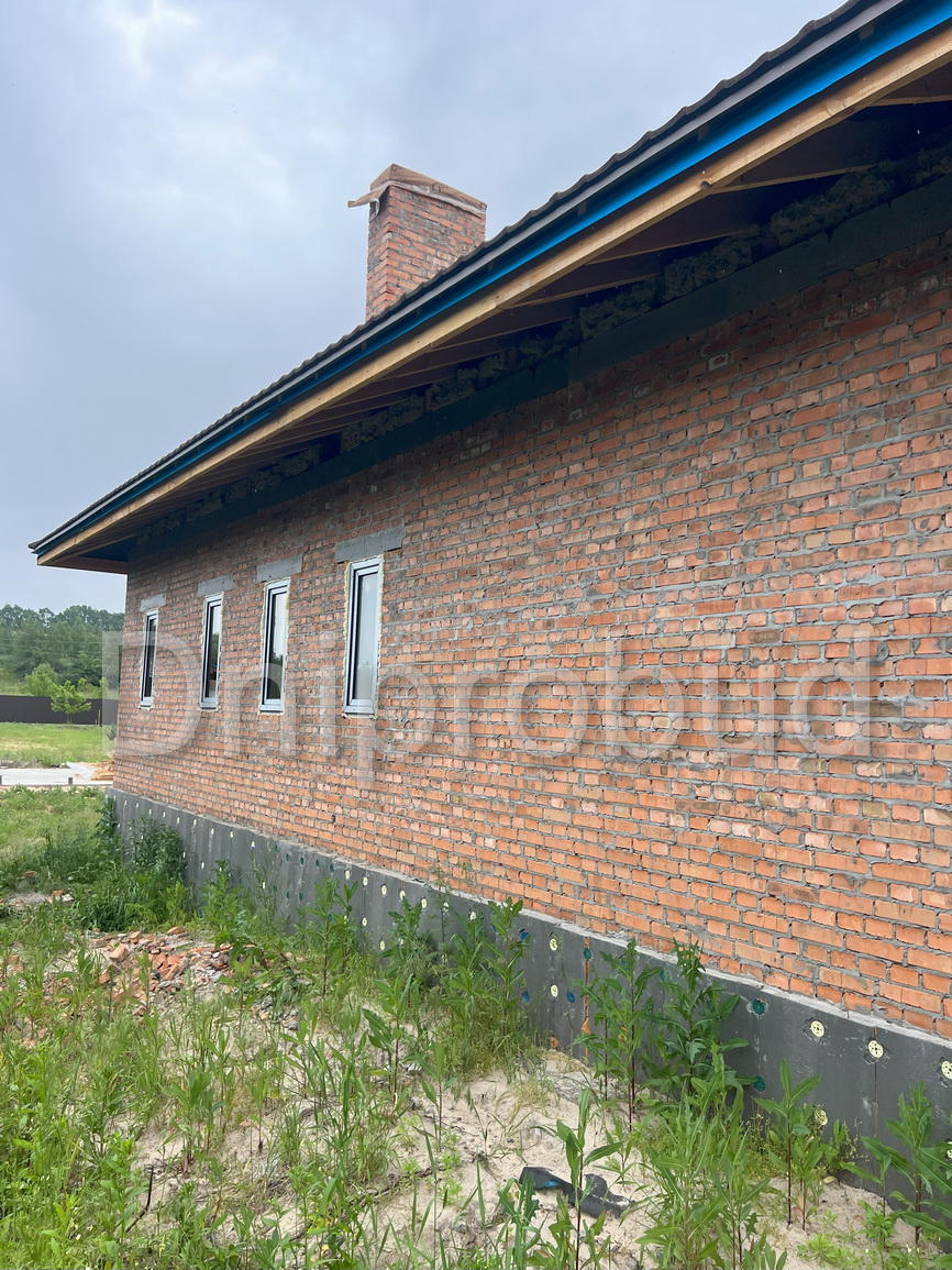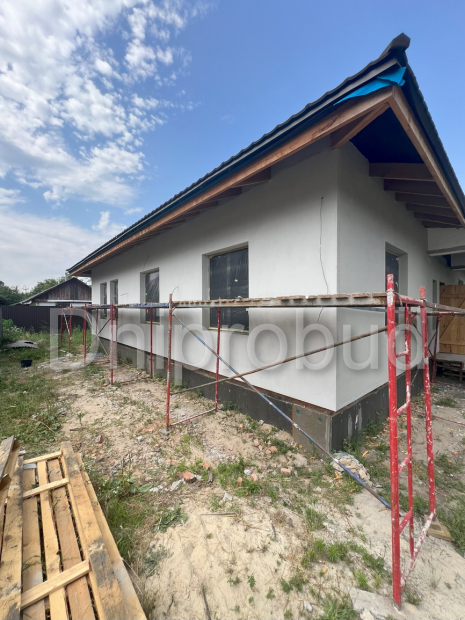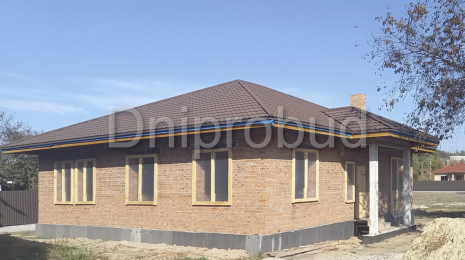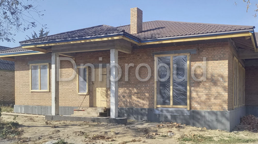 Одноповерховий будинок у с. Хлепча, Київської області збудований за проєктом замовника. Будівництво розпочалося з фундаменту основного будинку, господарчої споруди та альтанки.