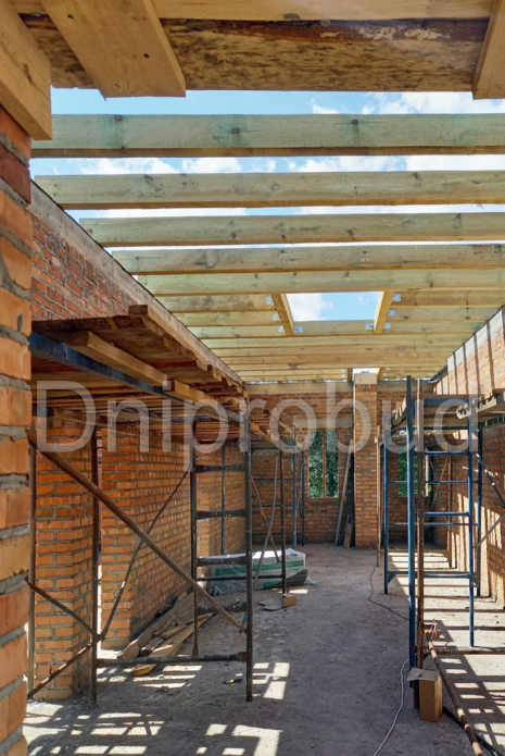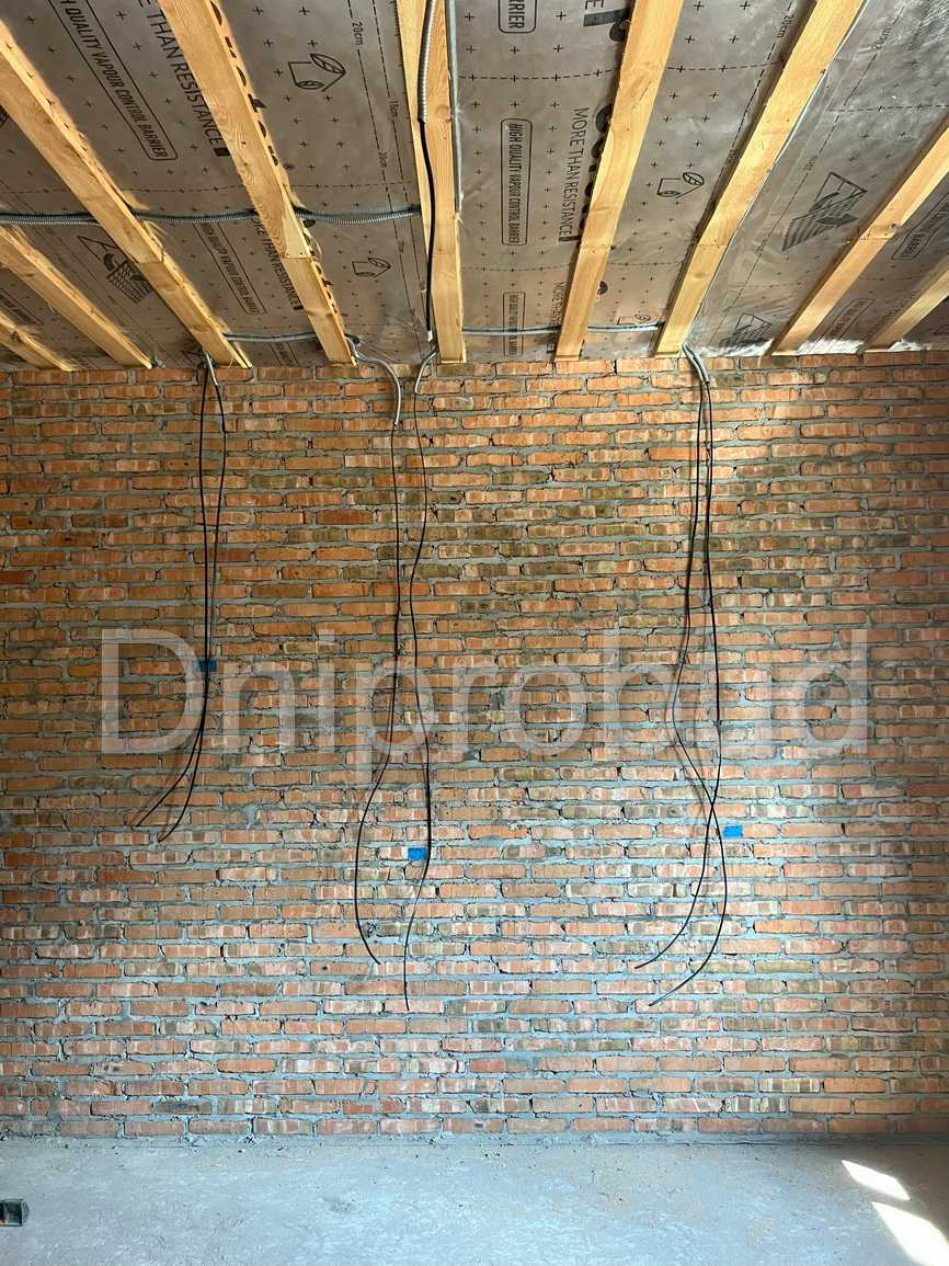 - Коробка будинку виконана з рядової повнотілої червоної цегли.