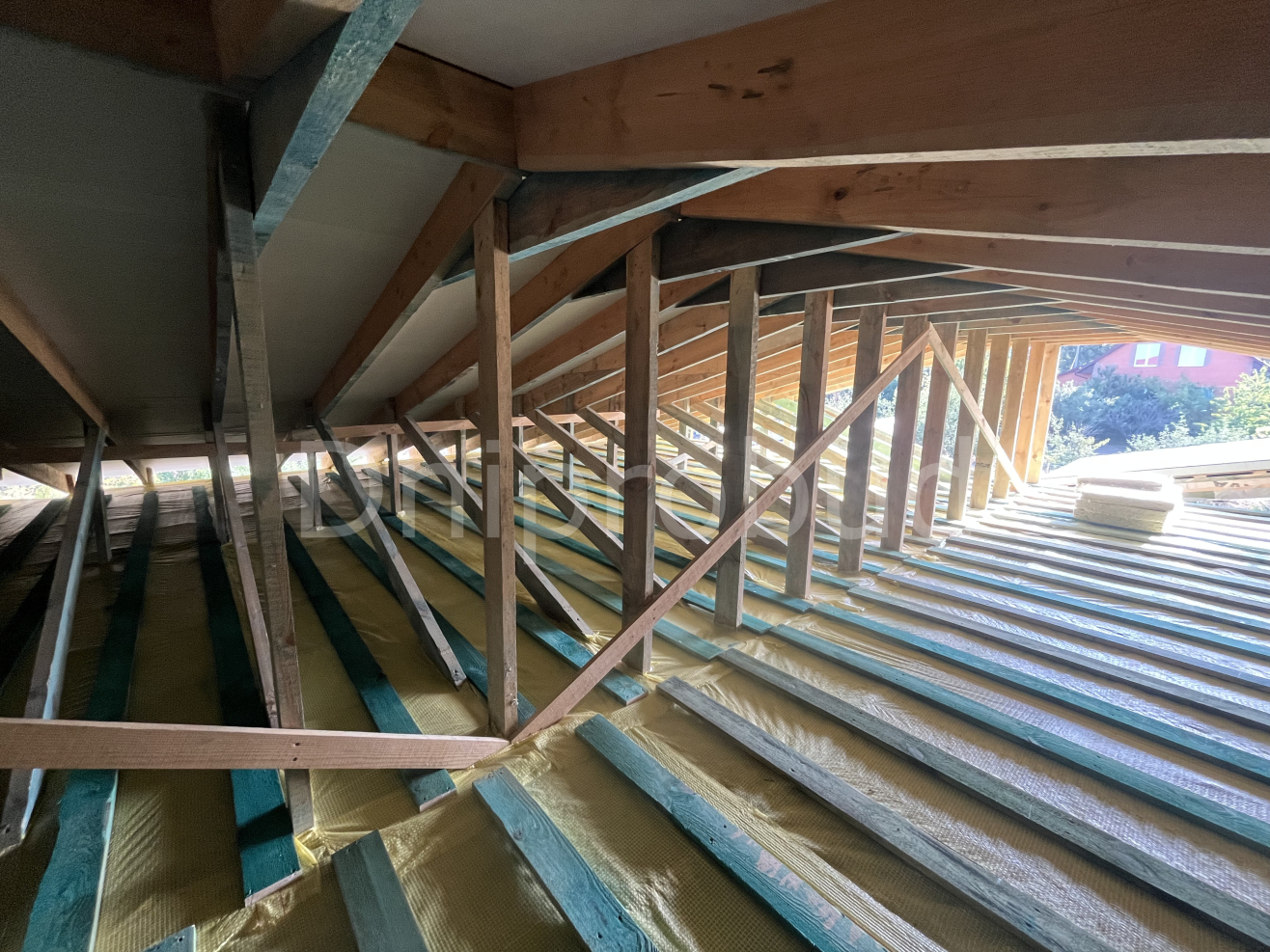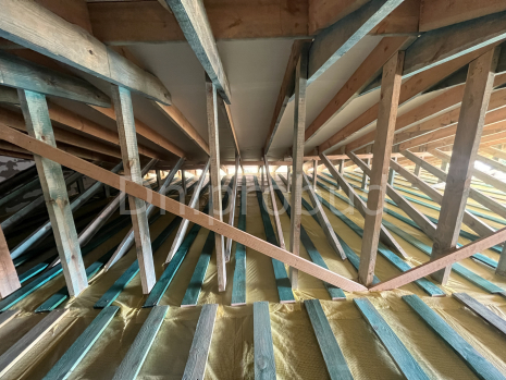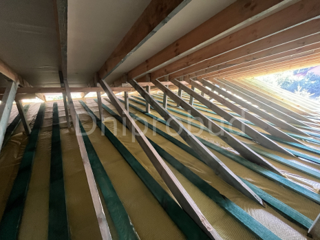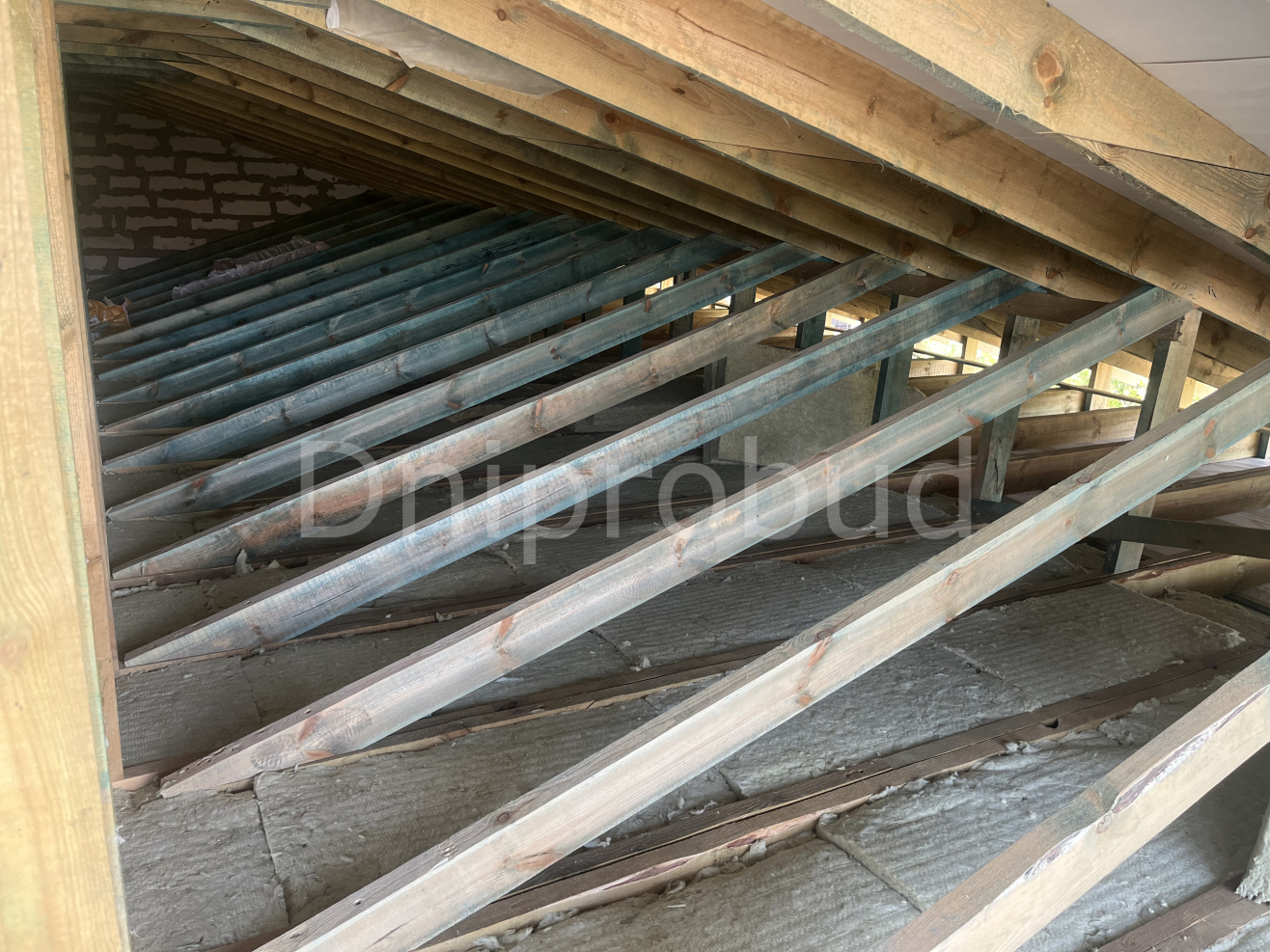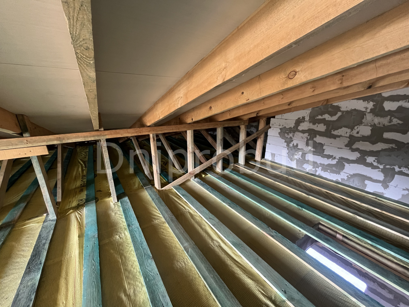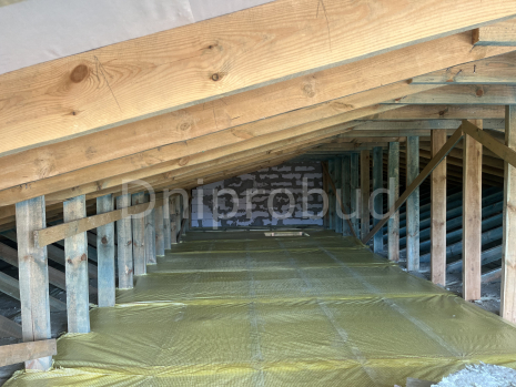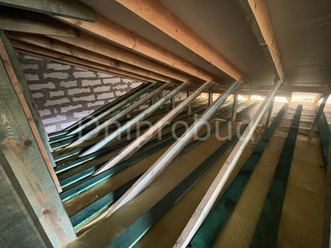 Перекриття: дерев'яні балки. Утеплення стелі мінеральна вата 300 мм.