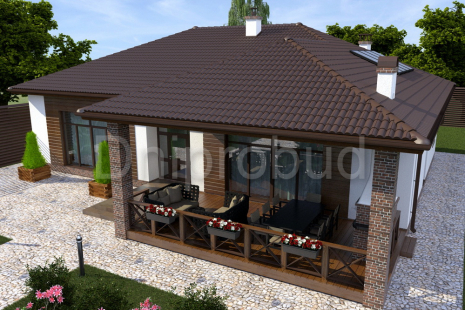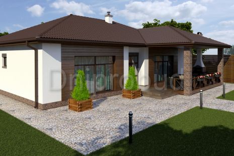 Одноповерховий будинок у с. Новоолександрівка збудований за індивідуальним проєктом від компанії Дніпробуд.