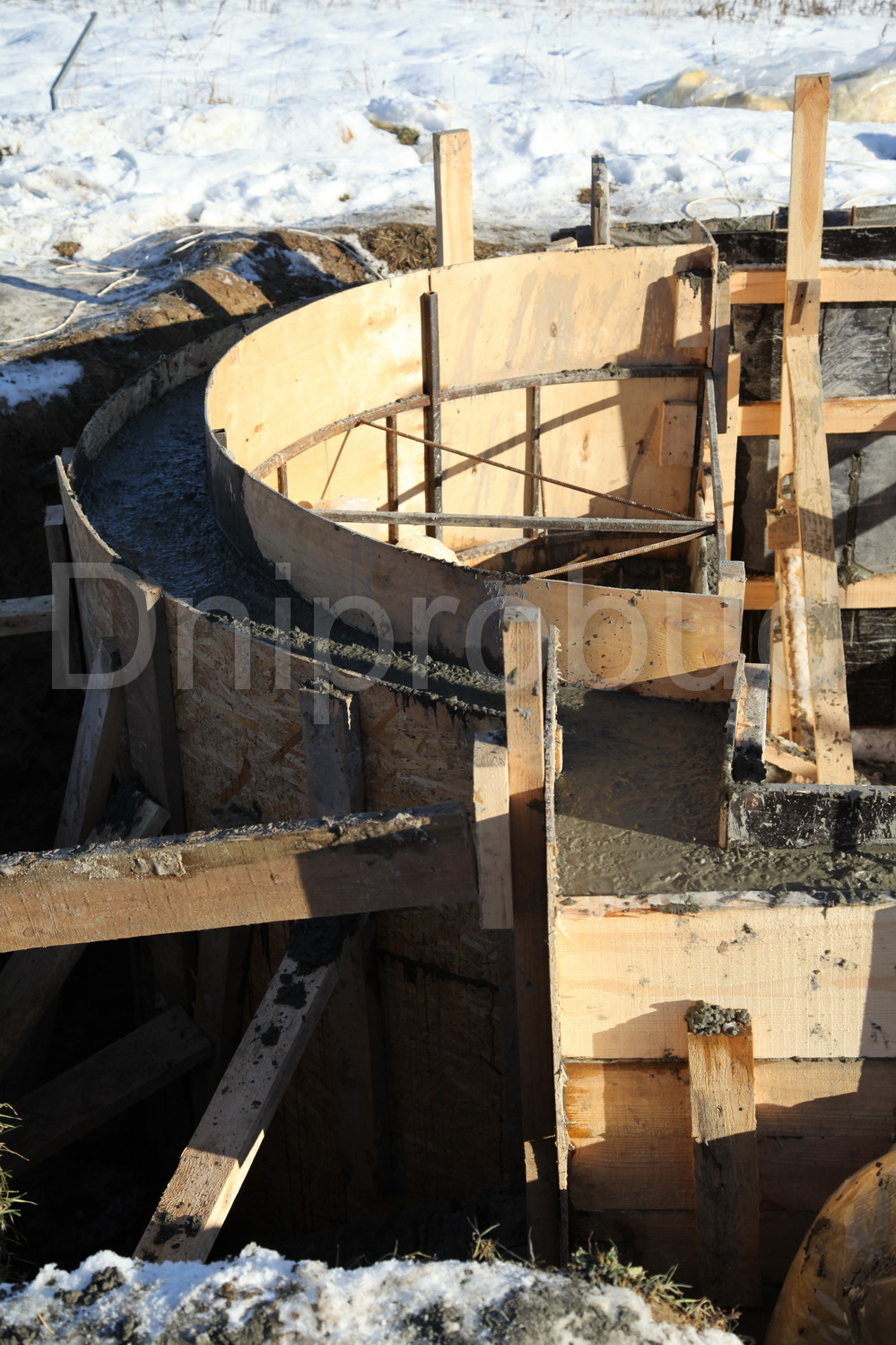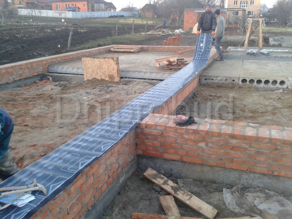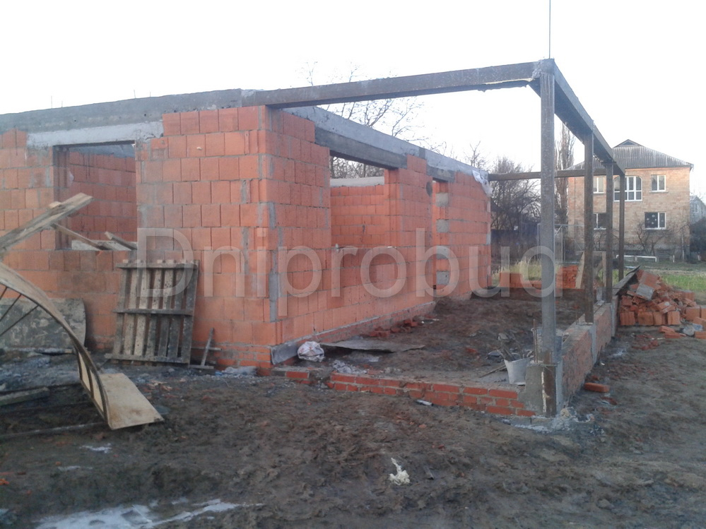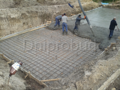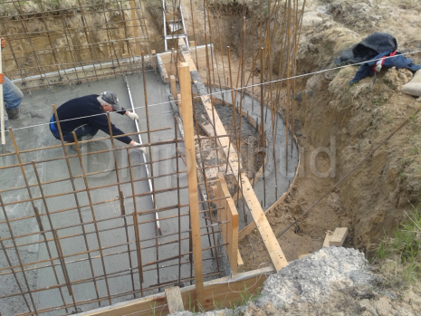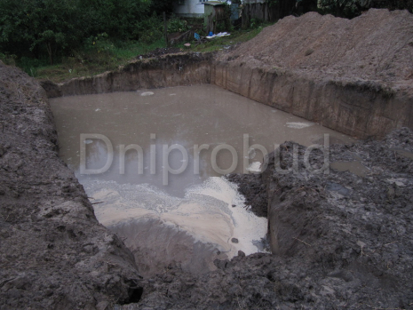 Будівництво садиби в Києві (с. Хотів). Садиба складається з: Будинок 2-х поверховий з цоколем під 1/2 будинку 19*14 м., площею 430 м. кв. Лазня з кімнатою відпочинку і відкритою терасою, 10,4* 7,3 м. Басейн монолітний 8*4 м, Погріб у вигляді окремої будівлі «Льох» 2,7*3,4 м. Гараж на 2 авто + навіс на 1 авто+ вольєр 7,2*10,4 м. Фундамент — монолітна плита товщиною 30 см, блоки ФБС 24*6*6 і 24*5*6, армопояс. Стіни — глиняна цегла загальнобудівельний 380 мм + мін. вата 100 мм. + клінкерна цегла 120 мм. Покрівля — натуральна черепиця.