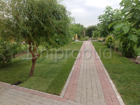 Будинок мансардного типу на два входи. Призначений для автономного проживаючи двох поколінь. Загальна площа 185 кв. м. Стіни виконані з черепашнику 400 мм + утеплення пінополістиролом 50мм + декоративна штукатурка. Комбіноване опалення (газ і електрику взаємозамінні). Покрівля бітумна черепиця. Погріб. На ділянці розташовані: альтанка з барбекю, теплиця, гостьовий будиночок з гаражем та навісом для автомобіля.