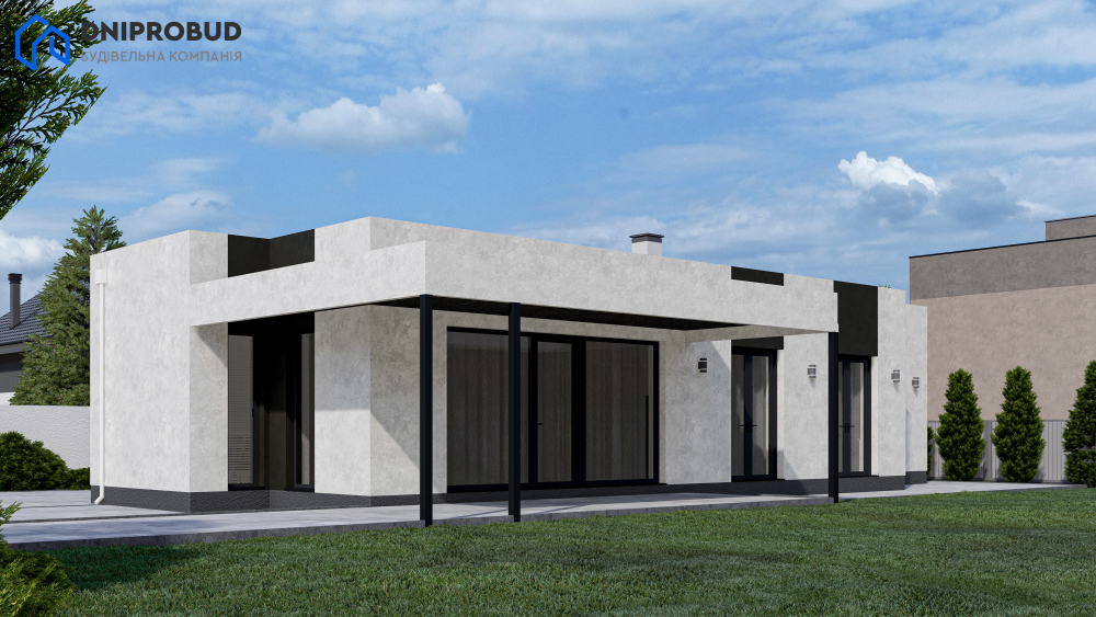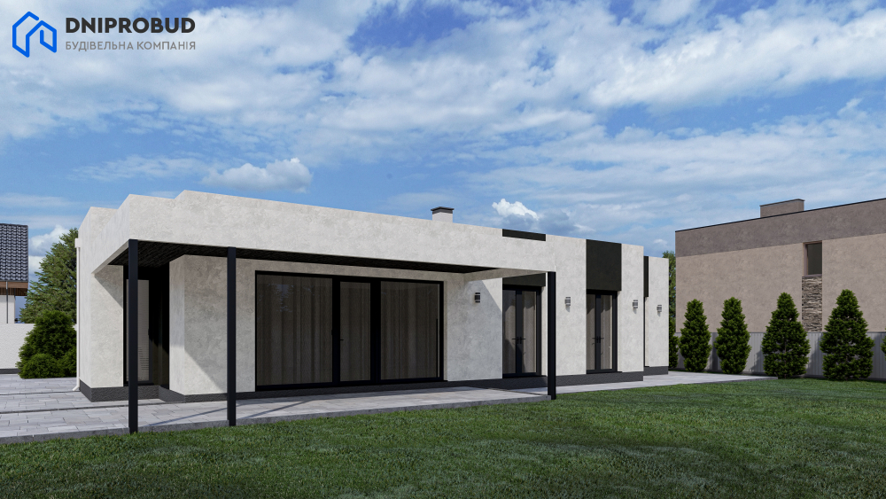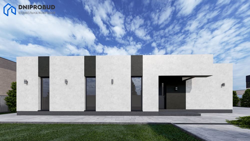 Db 23 - проєкт одноповерхового будинку, який має сучасний архітектурний стиль із акцентом на мінімалізм.