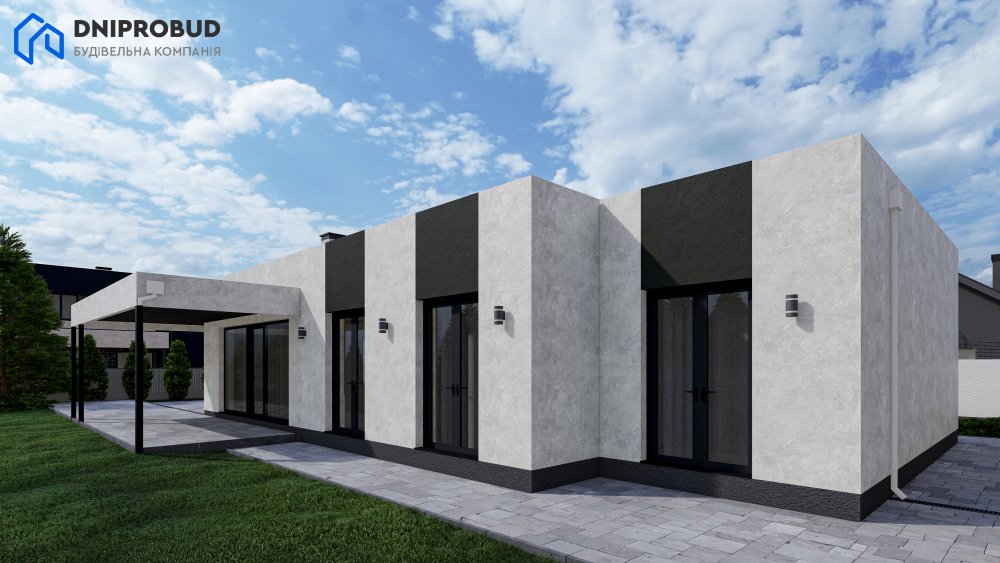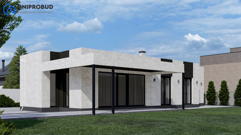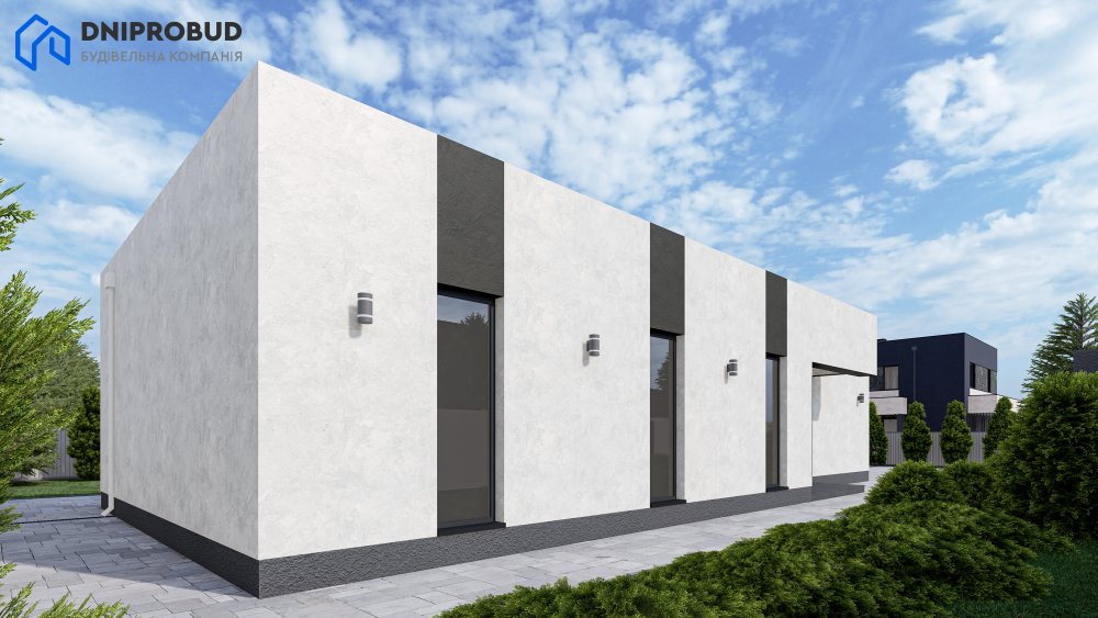 Db 23 v1 - проєкт сучасного одноповерхового будинку у мінімалістичному стилі.