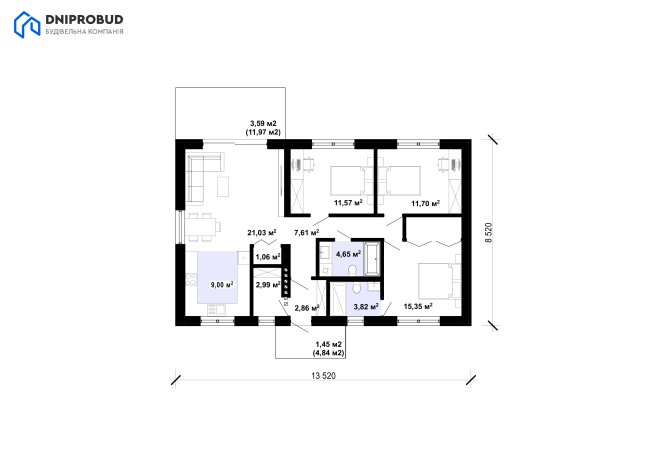 Db 32 — ідеальний вибір для тих, хто шукає затишний і водночас функціональний одноповерховий дім для сім’ї.