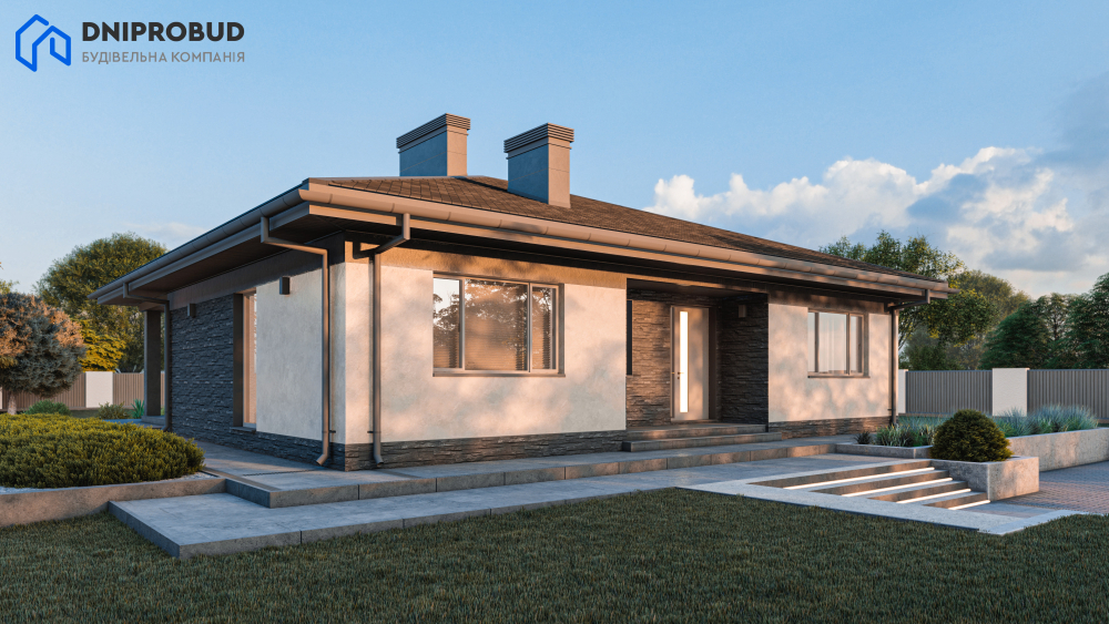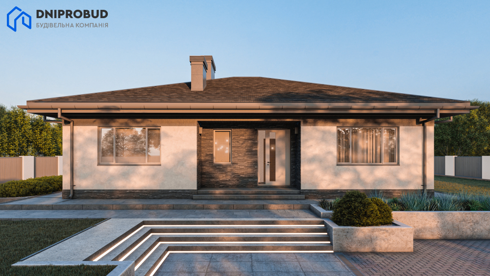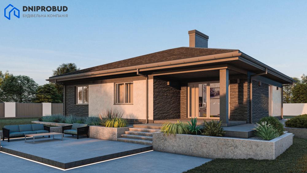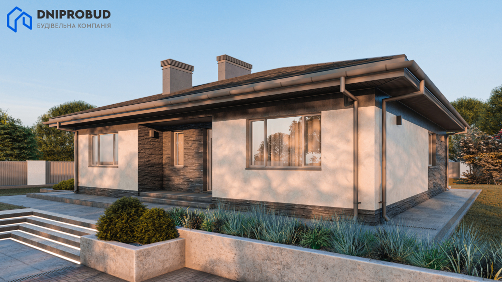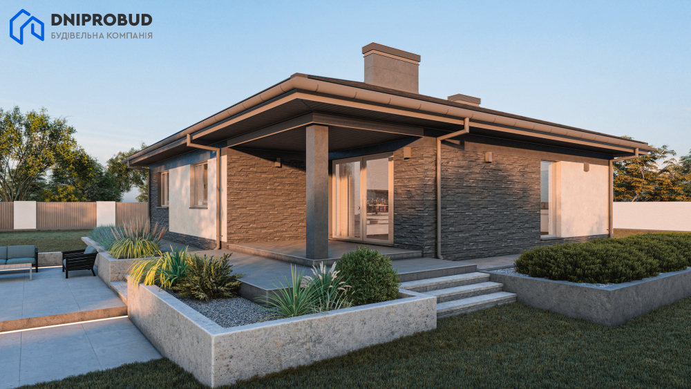 Елегантний та функціональний одноповерховий будинок, створений для комфортного заміського життя. Цей проєкт ідеально поєднує в собі лаконічність сучасної архітектури та продуману ергономіку простору. Цей проєкт — чудовий вибір для сім'ї, яка цінує затишок, приватність та естетику сучасних архітектурних рішень.