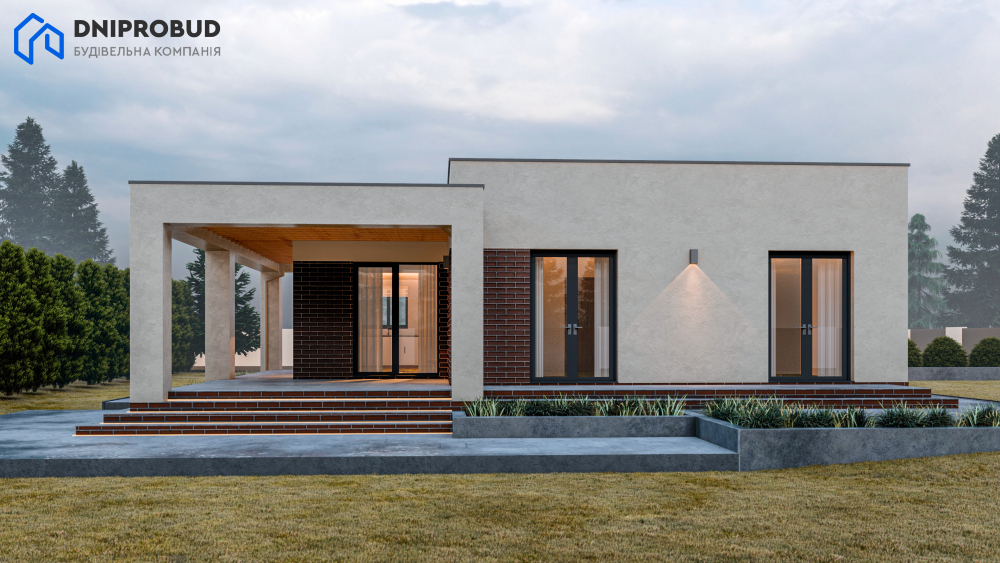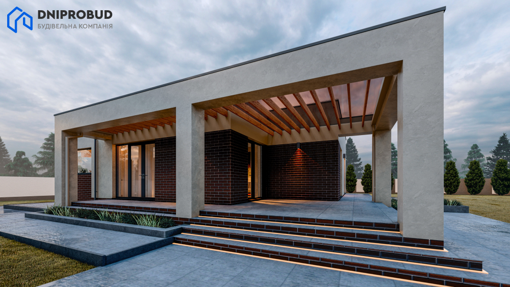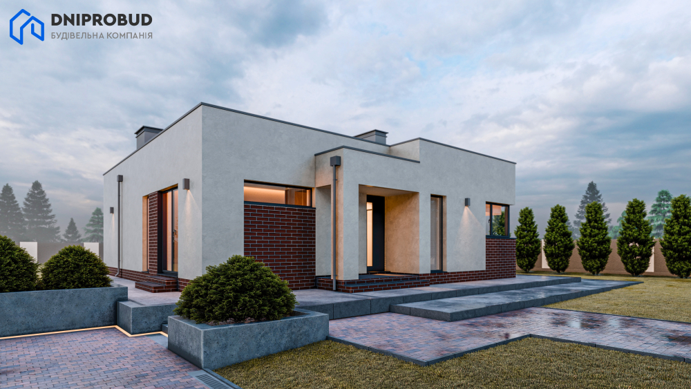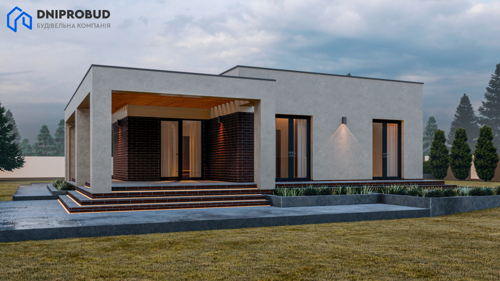 Сучасний котедж, що втілює найкращі традиції мінімалізму та функціональної архітектури. Чіткі геометричні лінії, плоский дах та продумане зонування роблять цей проєкт ідеальним вибором для поціновувачів трендового дизайну та раціонального використання простору. Цей будинок створений для тих, хто прагне жити в гармонії з сучасними інноваціями, естетикою та комфортом.