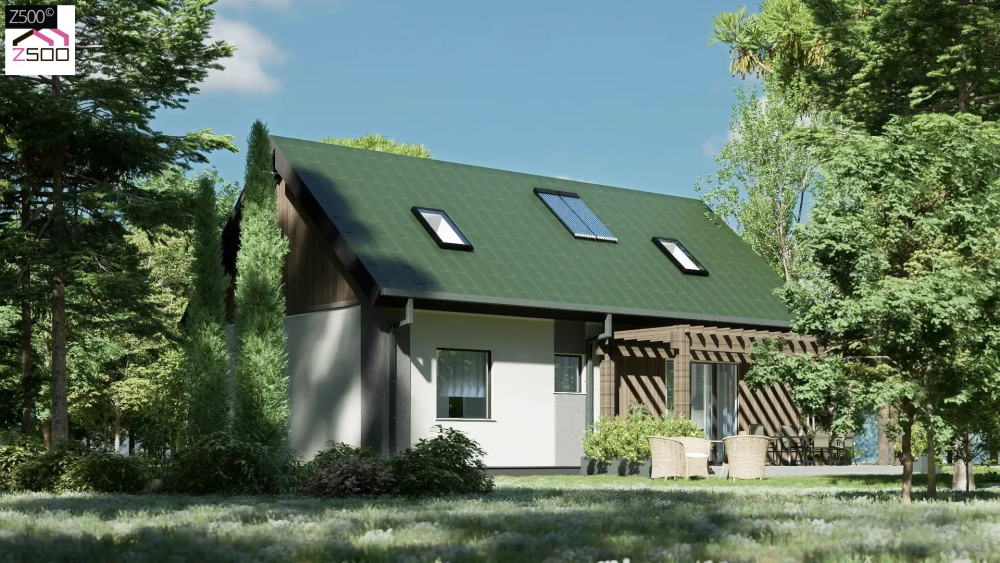 Проєкт компактного будинку з мансардою та ясною логікою приміщень.