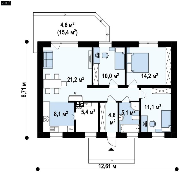 Подвариант одноэтажного дома Z454 со вторым светом над гостиной