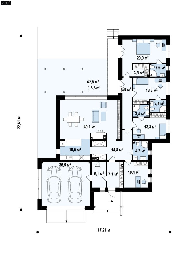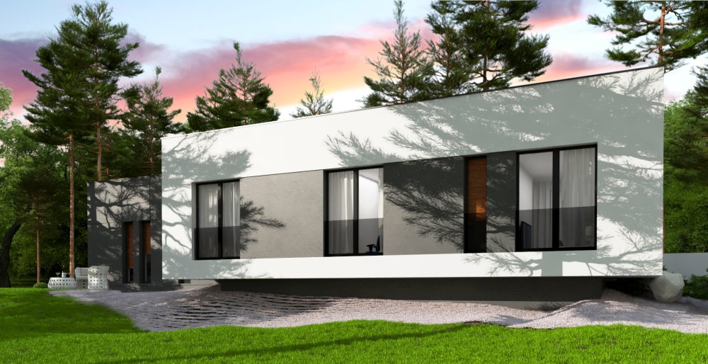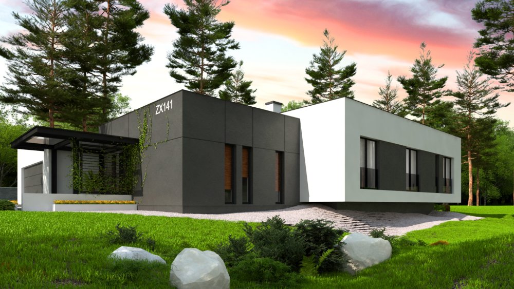 Вариант одноэтажного дома Zx141 с плоской кровлей и измененной планировкой