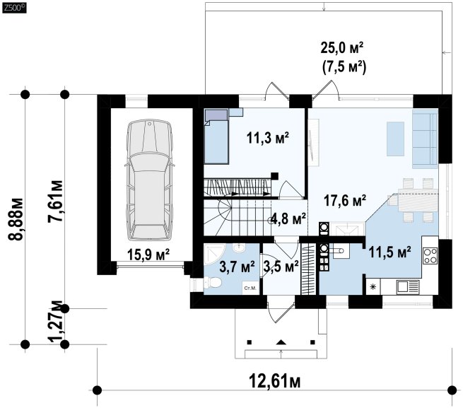 Компактний будинок з гаражем для однієї машини