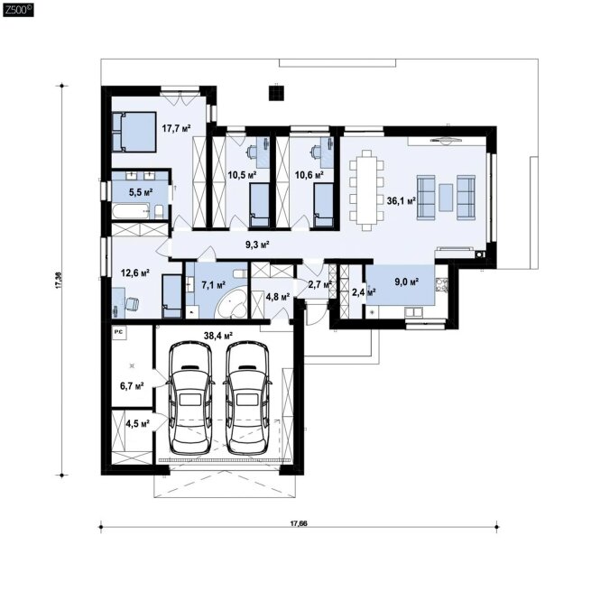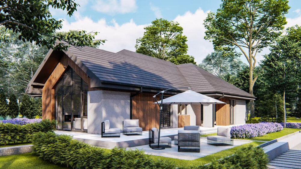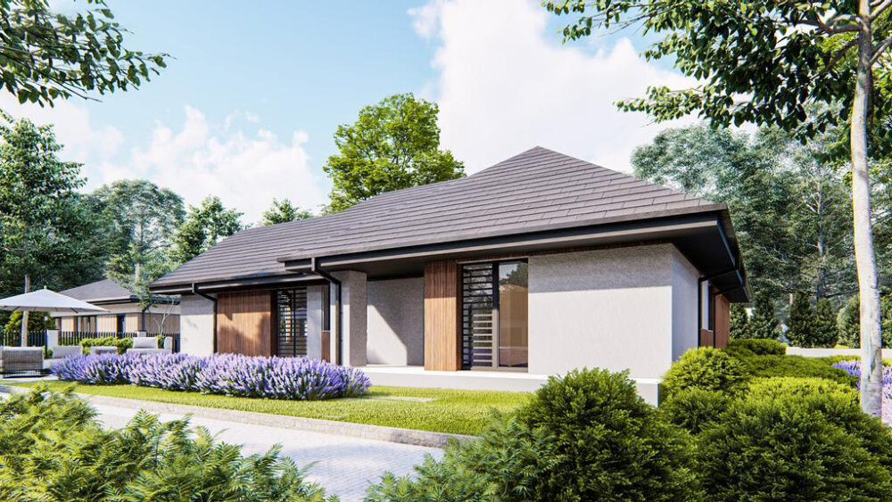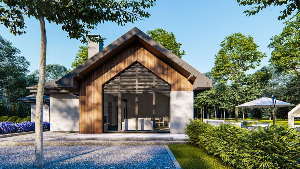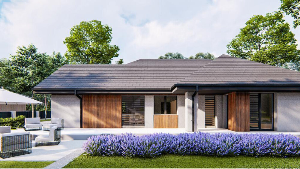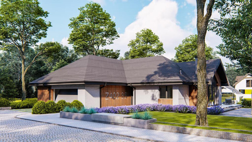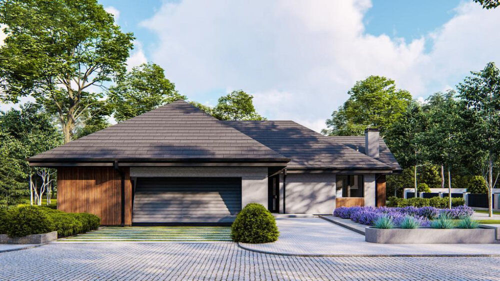 Одноэтажный дом с гаражом на 2 машины и 4 спальнями