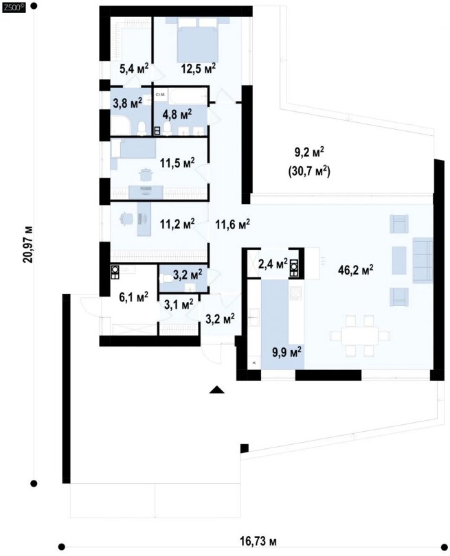 На плоскій покрівлі продовж всієї зими може зібратися великий обсяг снігу, частково криги, які для конструкції будинку небезпеку не являють (наші проєкти враховують максимально можливі снігові навантаження). Але для покрівельного покриття утворення криги небажане.