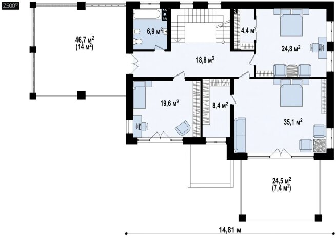 Можливо будівництво альтернативних видів покрівлі, наприклад керамічна плитка, компазитна черепиця і.т.п, згідно з побажаннями клієнта та за підтвердженням конструктора.